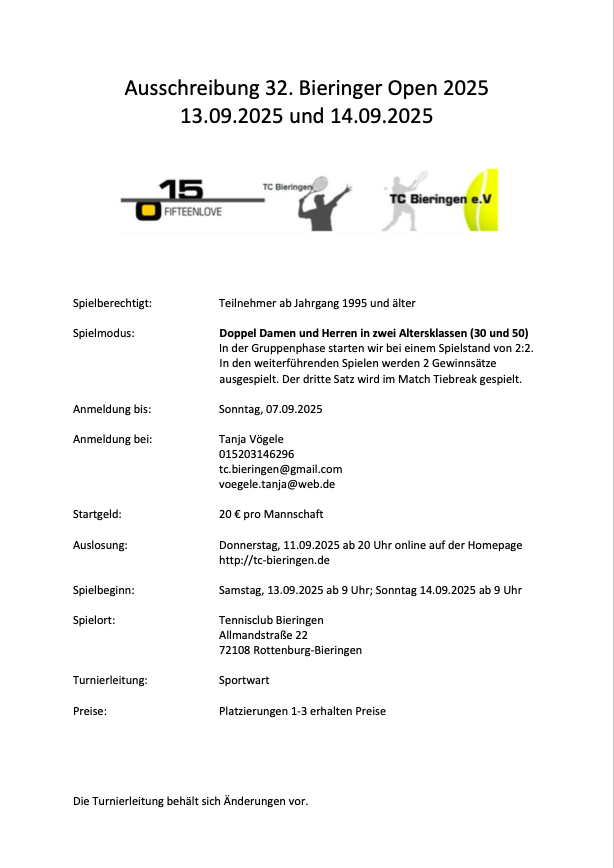 Anmeldung zu den Bieringer Open bitte per Mail an tc(dot)bieringen(at)gmail(dot)com.